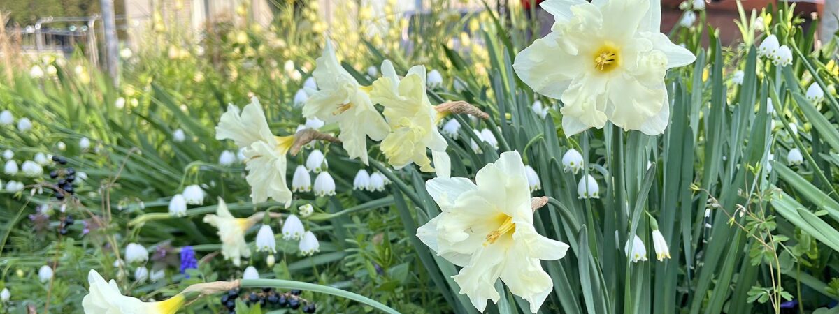 春、西洋では華やかなスイセンを町中に植えて、開花期のスイセン(ダフォディル)を、光の到来・再生の象徴として大変愛ているそうです。イースターの時期には、再生の象徴として教会にデコレーションに相応しいとされています。