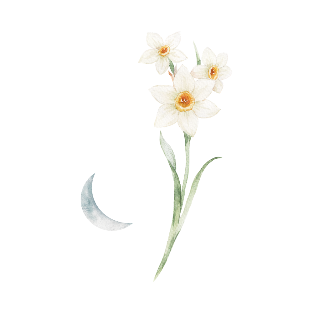 主に「房咲きで花が小さく、香りが非常に強いもの(ニホンスイセンの仲間など)」や、原種に近いものを指して使い分ける人が多いです。凛とした静謐さ、古典的な印象。ナルキッソスの神話から連想するような「自己愛」「内省」「孤独な美」「うぬぼれ」「自意識」を花言葉に持ちます。
