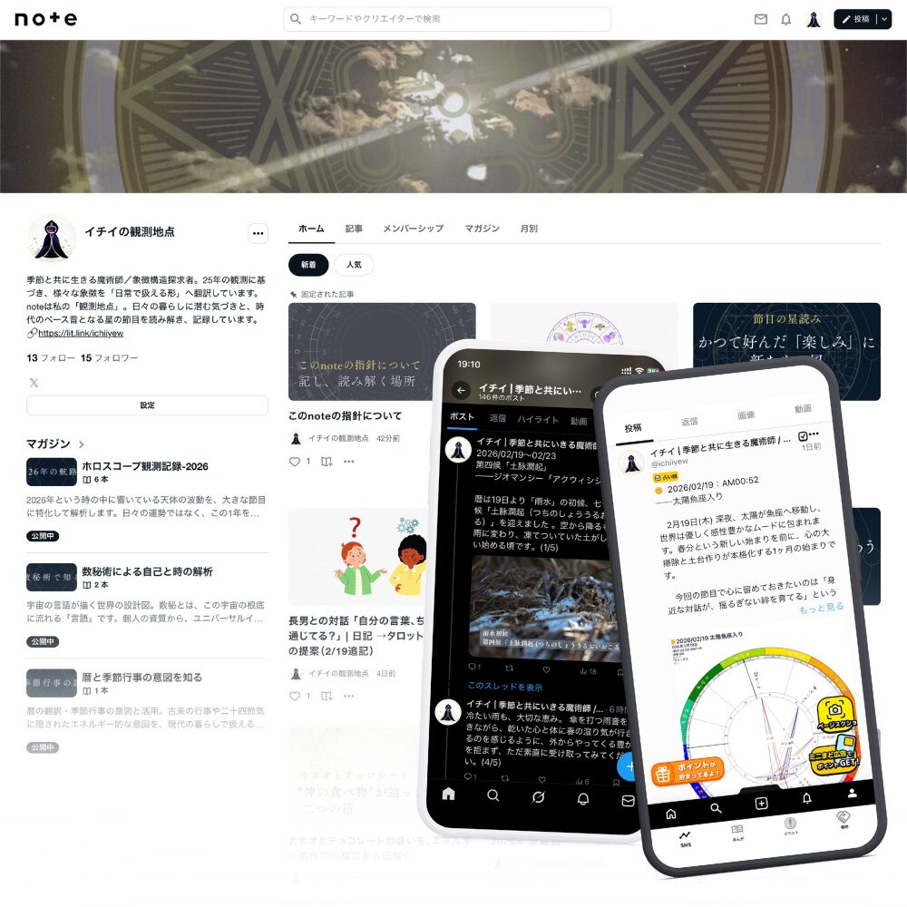 毎日のデイリーカード占いホロスコープリーディングは各SNS(X,Bluesky,wick)にて、週間占いはnoteにて発信しています。